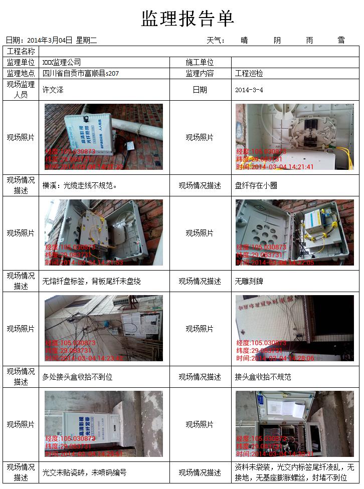 3)通过全球定位、现场拍照、加密、加时间戳等功能,起到记录真实监理现场并防篡改的作用。同时所有任务均可按照模板导出《作业报告》,图文并茂,既有图有真相,又减轻监理员文案压力;