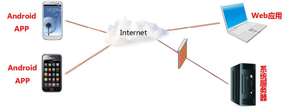 本案例由两部分构成: 手机终端APP(Android) 和 服务器端Web应用,如下图所示: